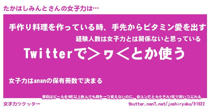 | ヘコむあだ名 | 『たかふぇ~』『なまこ酢』 |