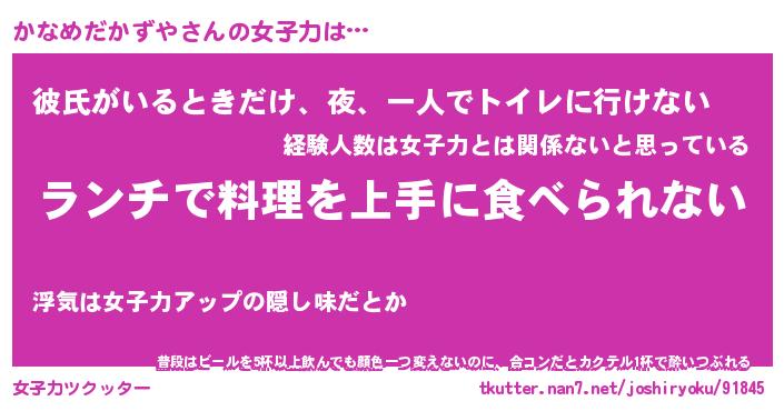 | 恥ずかしいあだ名 | 『プリティーかなめだかずや』『かなちん』 |