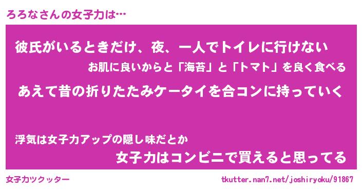 | ファンタジー風あだ名 | 『ロロフェル』『エターナルロロナー』 |