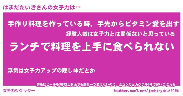 | ポケモン風あだ名 | 『ハマチュウ』『ハマダダネ』 |