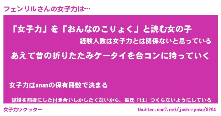 | ファンタジー風あだ名 | 『フェフェル』『エターナルフェンリルー』 |
