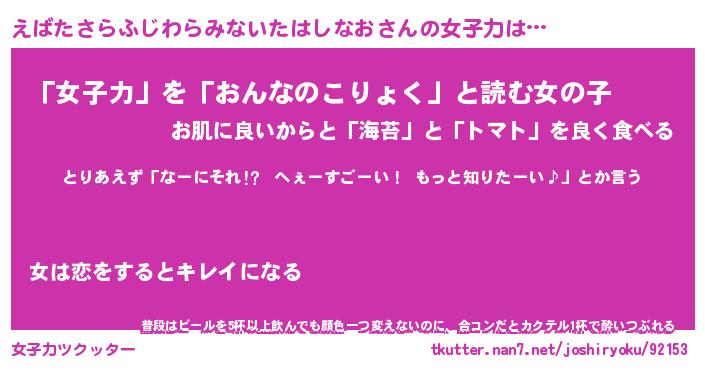 | ヘコむあだ名 | 『えばにー』『つくし』『えばっ子』 |