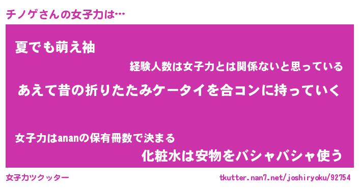 | 女子向けラノベタイトル風あだ名 | 『(仮)チノゲのやんごとなき事情』 |