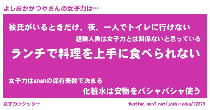 | 肩書あだ名 | 『よしおかかつや店長』 |