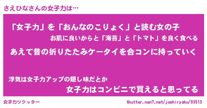 | ヘコむあだ名 | 『さえっふぃ~』『つくし』 |