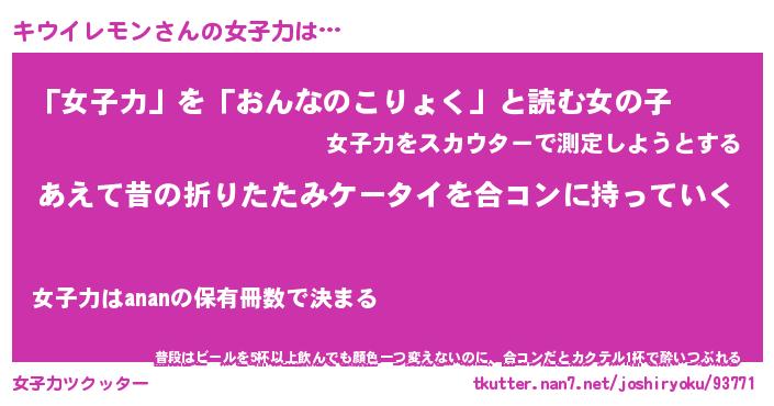 | ヒーロー風カッコイイあだ名 | 『スーパーキウイレモン』『暗黒騎士キウ』 |