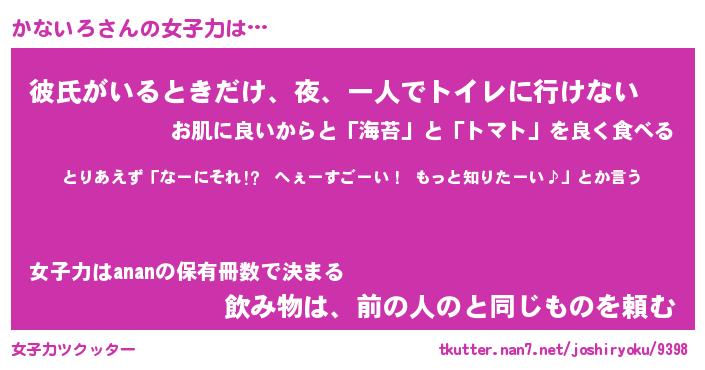 | ヘコむあだ名 | 『かなにー』『なまこ酢』『かなっぺ』 |