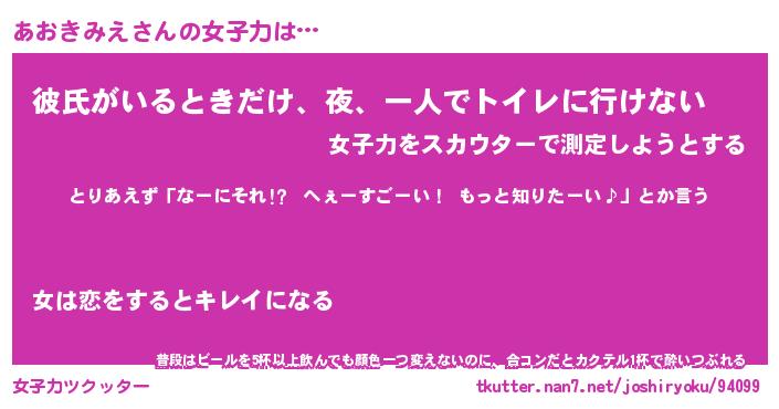| ヘコむあだ名 | 『あおっふぃ~』『豆乳』『あおを』 |