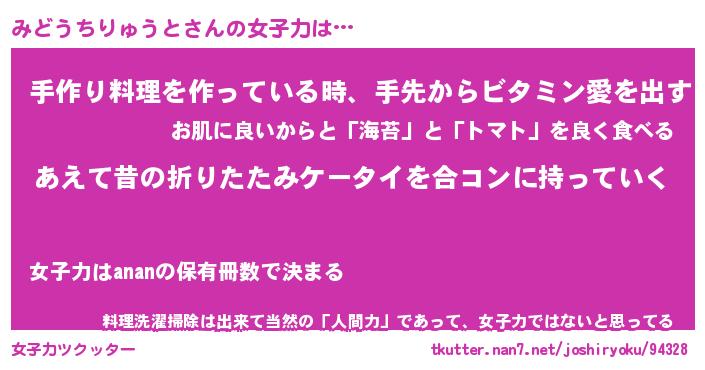 | ヘコむあだ名 | 『みどにゅー』『つくし』『みどお』 |