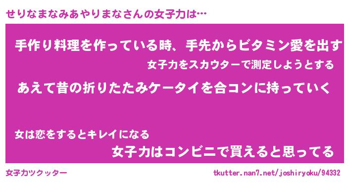 | 肩書あだ名 | 『せりなまなみあやりまなCEO』 |