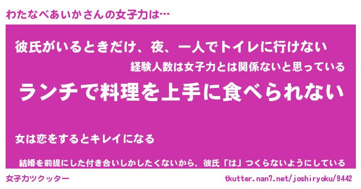 | ヘコむあだ名 | 『わたもー』『豆乳』『わたを』 |