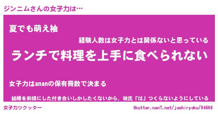 | ファンタジー風あだ名 | 『ジンフェル』『エターナルジンニムー』 |