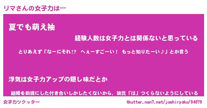 | ヘコむあだ名 | 『リマにゅー』『なまこ酢』 |