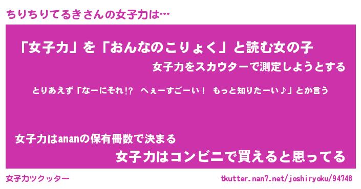 | 恥ずかしいあだ名 | 『プリティーちりちりてるき』『ちりちん』 |