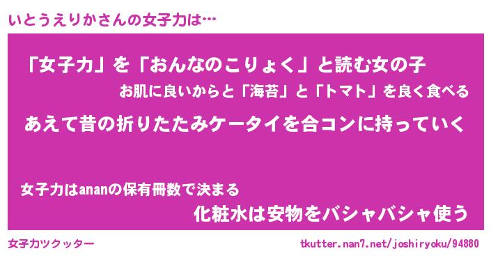 | ヘコむあだ名 | 『いとにゅー』『酢こんぶ』『いとを』 |