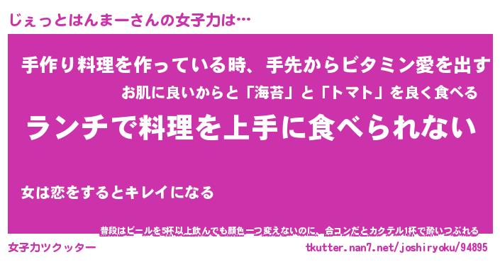 | 料理風あだ名 | 『ネギたっぷりじぇっとはんまーの南蛮漬け』 |