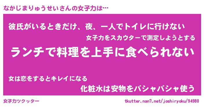 | ヒーロー風カッコイイあだ名 | 『スーパーナカジマリュウセイ』 |