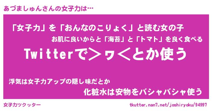 | ヘコむあだ名 | 『あづにゅー』『レバニラ』『あづお』 |