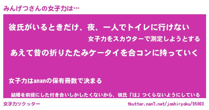 | ファンタジー風あだ名 | 『ミンフェル』『エターナルミンゲツー』 |