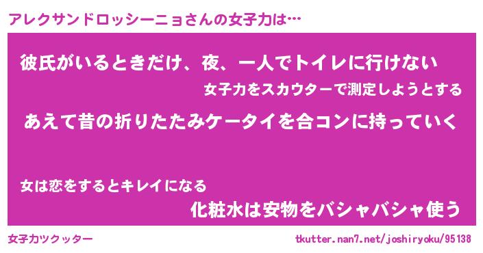 | 女子向けラノベタイトル風あだ名 | 『(仮)アレクサンドロッシーニョのやんごとなき事情』 |