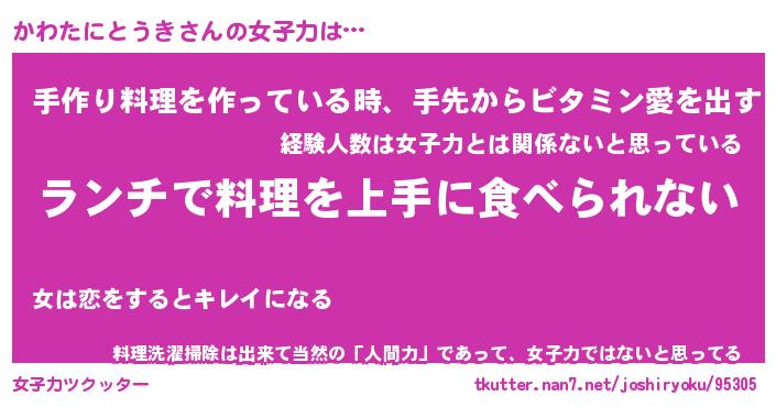 | ヘコむあだ名 | 『かわもー』『つくし』『かわ太郎』 |