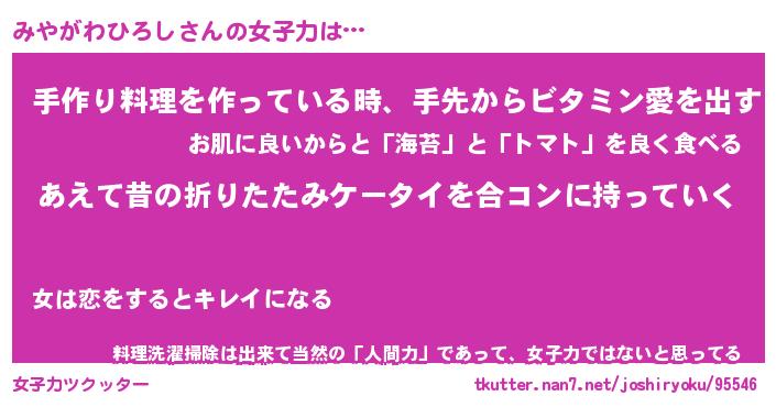 | ヘコむあだ名 | 『みやふぇ~』『牛乳』『みやを』 |