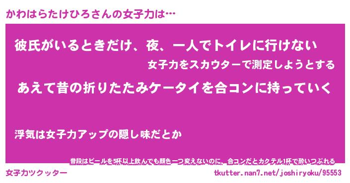 | ヘコむあだ名 | 『かわにゅー』『なまこ酢』 |