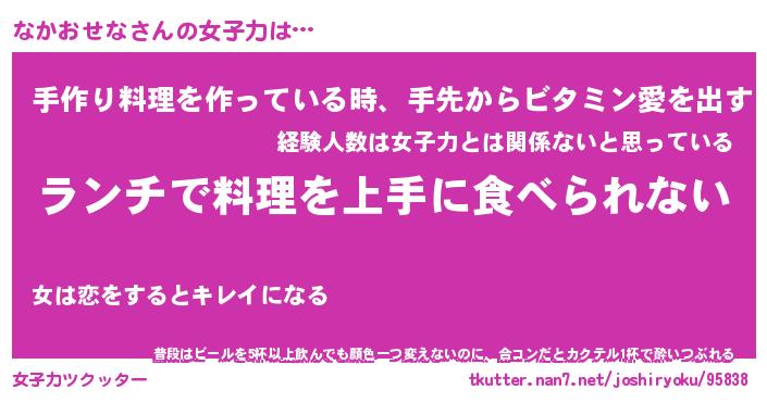 | ヘコむあだ名 | 『なかっふぃ~』『なまこ酢』 |