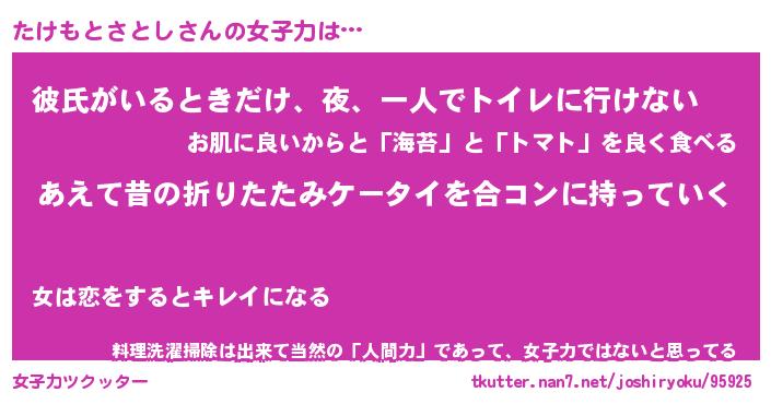 | 恥ずかしいあだ名 | 『プリティーたけもとさとし』『たけちん』 |