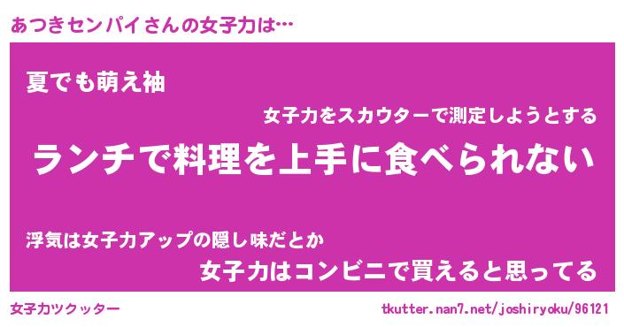 | ヘコむあだ名 | 『あつふぇ~』『なまこ酢』 |