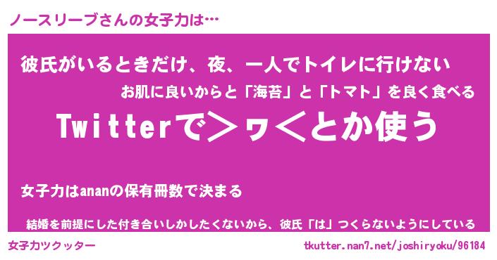 | ヒーロー風カッコイイあだ名 | 『スーパーノースリーブ』『魔戒騎士ノー』 |
