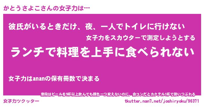 | 肩書あだ名 | 『かとうさよこ店長』『かとうさよこ塾長』 |