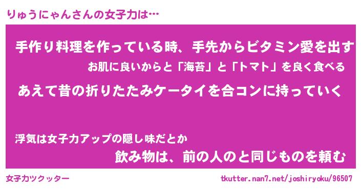 | 恥ずかしいあだ名 | 『プリティーりゅうにゃん』『りゅっちょ』 |