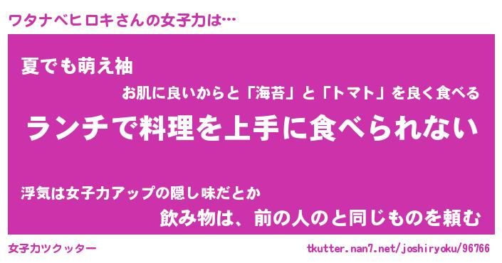 | ヘコむあだ名 | 『ワタにー』『なまこ酢』 |