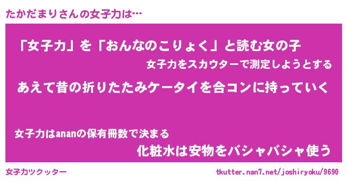 | ファンタジー風あだ名 | 『タカフェル』『エターナルタカダマリー』 |