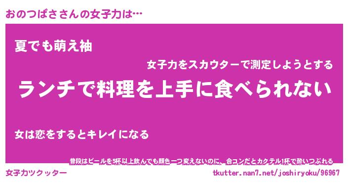 | 恥ずかしいあだ名 | 『プリティーおのつばさ』『おのっちょ』 |