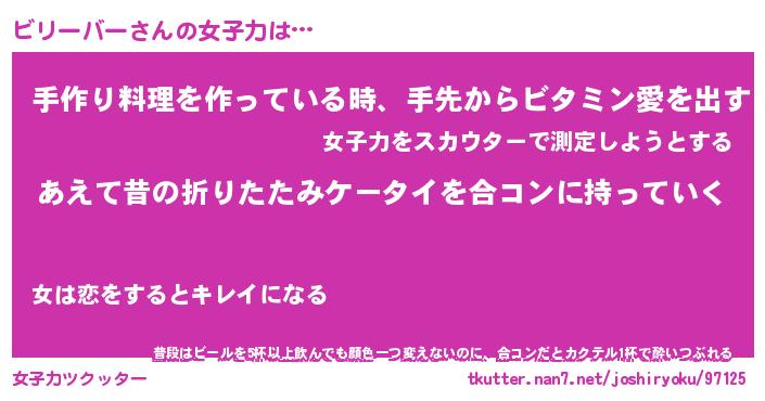 | ファンタジー風あだ名 | 『ビリフェル』『エターナルビリーバーー』 |