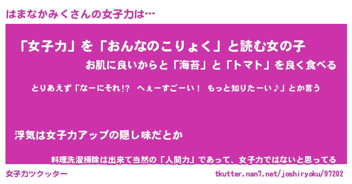 | 恥ずかしいあだ名 | 『プリティーはまなかみく』『はまっちょ』 |