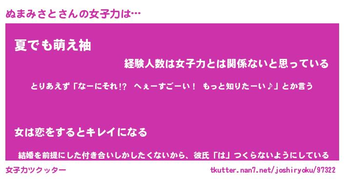 | ヘコむあだ名 | 『ぬまっふぃ~』『なまこ酢』 |