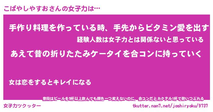 | ヘコむあだ名 | 『こばにゅー』『つくし』 |