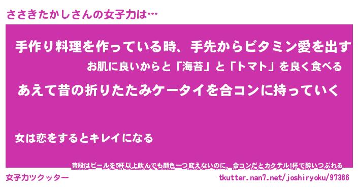 | ヒーロー風カッコイイあだ名 | 『スーパーササキタカシ』『黄金騎士ササ』 |