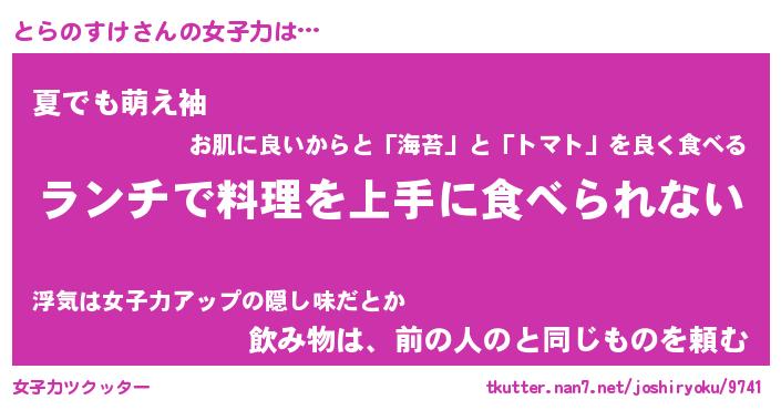 | ヘコむあだ名 | 『とらもー』『酢こんぶ』『とらっぺ』 |