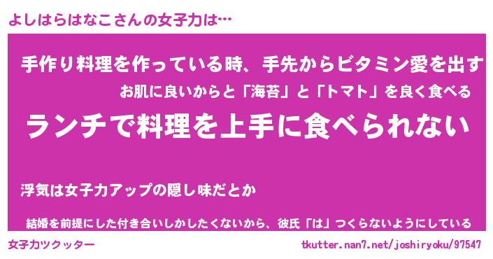 | 料理風あだ名 | 『ネギたっぷりよしはらはなこの南蛮漬け』 |