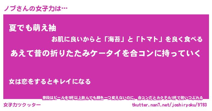 | ヘコむあだ名 | 『ノブもー』『なまこ酢』『ノブお』 |