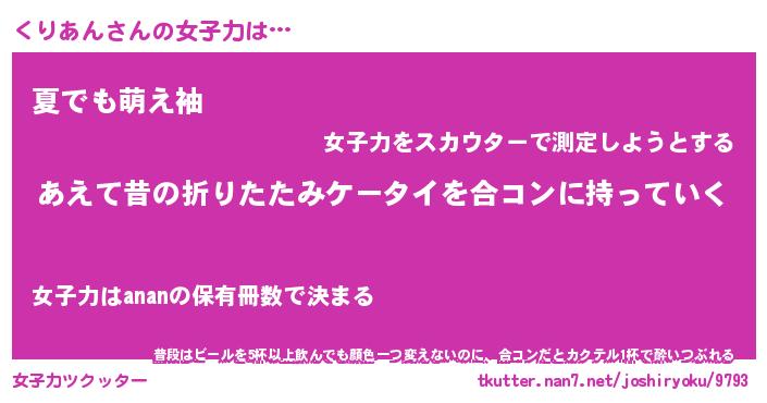 | 意味不明あだ名 | 『ペロリンくりあん』『永久保存くりあん』 |