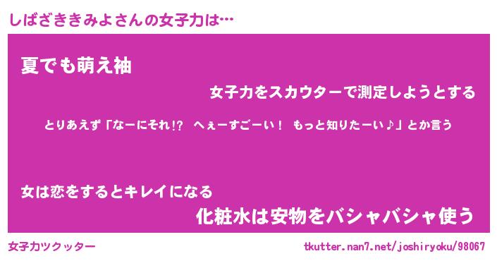| 胡散臭い通販商品みたいなあだ名 | 『億万長者になれるブレスレット…その名も「しばざききみよ」』 |