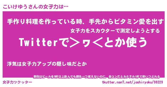 | ファンタジー風あだ名 | 『コイフェル』『エターナルコイケユウー』 |