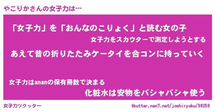 | 意味不明あだ名 | 『ペロリンやこりか』『永久保存やこりか』 |
