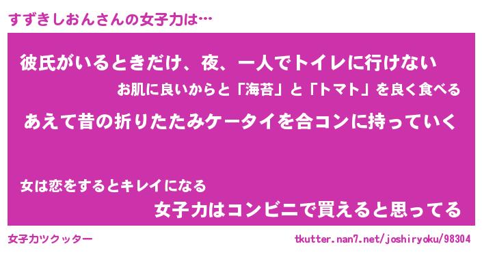 | ヘコむあだ名 | 『すずっふぃ~』『つくし』 |
