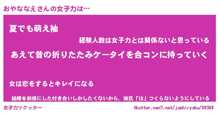 | ヘコむあだ名 | 『おやっふぃ~』『なまこ酢』 |